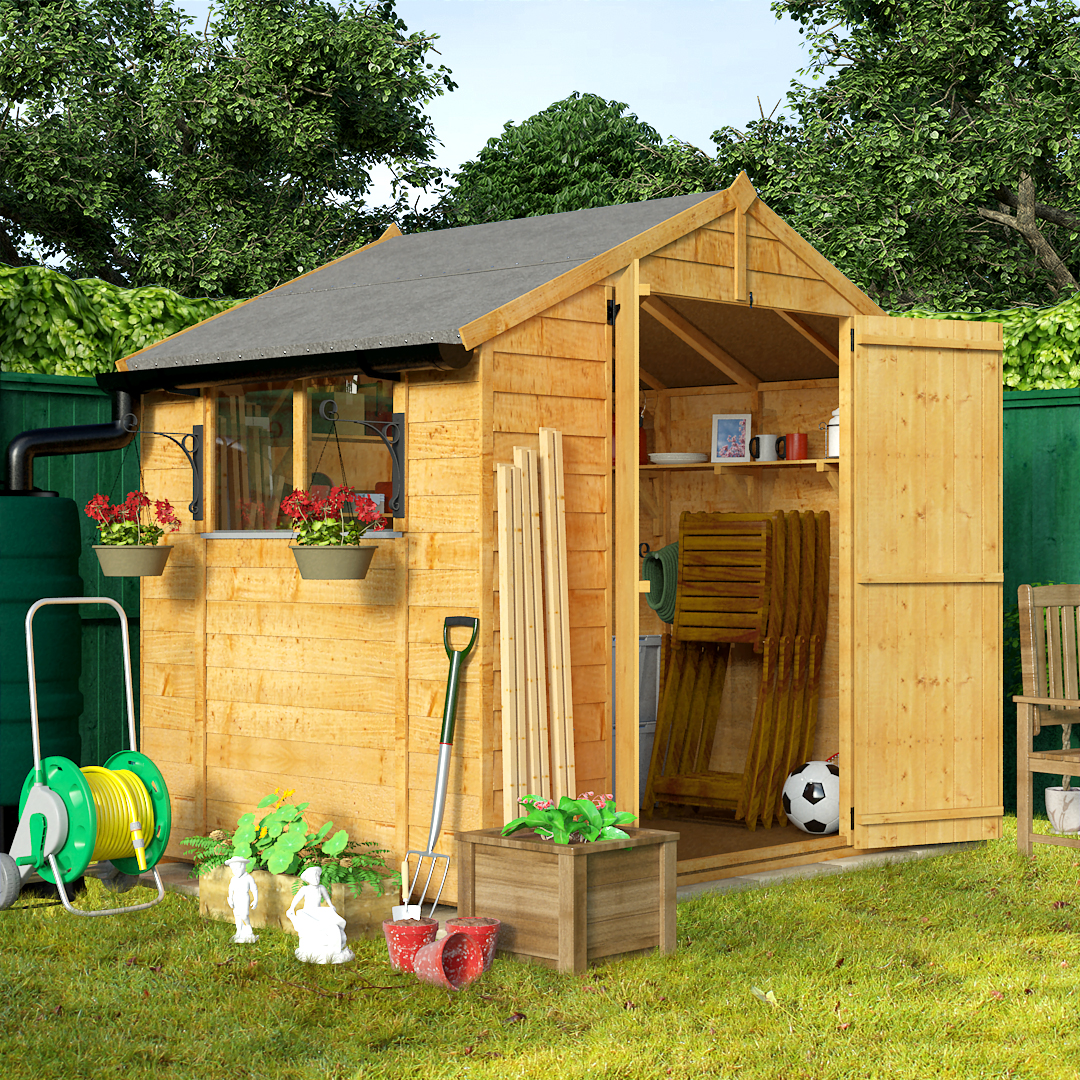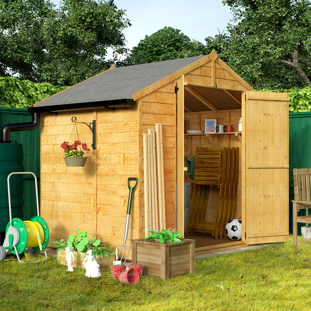 Did you know ?The base can be bought separately (see our selection of shed bases) or made yourself using concrete, wood or gravel8 x 68 x 6 4 x 6 Windowless T and G Apex Shed Manufactured by BillyOh A typical time for 2 people building a metal shed is 6-8 hours depending on the model3 ft (KG122) BillyOh 30 5 x 7 Windowed Economy Overlap Apex Shed Manufactured by BillyOh Roof thickness: 10mm The weatherproof felted roof is constructed from durable sheet material, designed to give increased head room inside the shed, making it ideal for general garden storage External: 2020 x 2170 x 1890mm This shed is available with an assembly option or you can build it yourself – see the option button above to choose Hardwearing sheet material floor Eaves height: 1855mm Self-assembly required Internal W x D x H: 1860 x 2070 x 1880mm Useful info: Compact garden shed8 mm overlap claddingH 188, W 125, D 91 cmBlack sand felt roofNo windowsQuick and easy to buildComes with instructions and fittingsFSC certified timber4x3 ft single door overlap shed FOREST helpline: 0844 2489801 Delivery: Please note we cannot deliver this item to the following postcodes - HS1-9, IM, KA27-28, KW15-17, PA41-78, PH42-44, PO31-41 or ZE Internal W x D x H: 1745 x 1250 x 2194mm External W x D x H: 1815 x 1320 x 2264mm Designed without windows for increased security Fixings supplied Click on the options button above and you can choose between the shed only, shed and assembly or shed, assembly and base options7 x 9 Manufactured from square-cut overlap timber boards, helping rain water run off the building and allowing flexibility and movement Roof frame (W x D): 28 x 28mm Wall frame (W x D): 26 x 26mm 12mm Tongue & Groove CladdingTimber ConstructionFactory Applied Base Coat TreatmentSingle Door with Hasp & Staple LockFrame & Cladding PanelsGrey Felt Roof1 x Fixed Glass Window2 People Advised to Assemble1 Year Manufacturer's Anti-Rot GuaranteeWide Single Door Product contents:Fixings, felt, glazing and assembly instructions All sheds need to be constructed onto a suitable base which you must complete before you start assembly Base not included Base not included Compact size ideal for smaller gardens Useful info: Double doorsSolid sheet floor and roofCladding thickness 8 mm2 fixed styrene windowsH 214, W 203, D 239 cmsPressure treated floor bearers10-year anti rot guaranteeFSC certified timber8 x 6 ft overlap garden shedFOREST helpline: 0844 2489801 Unfortunately our service does not include the dismantling and removal of your existing shed 4 ft (KG120) and 12 Why not take the hassle out of DIY and get it done for you? We will arrange for someone to come and assemble this product in your garden Recommended dimensions when making a base – width 202 cm, base length 137 cm Dimensions W 1829mm x D 1197mm Safe and secure hidden hinges with a plate hasp and staple latch Width (total to overhangs) 202 cm, length (total to overhangs) 137 cm, Height (total of top of roof) 189 cm Base not included Useful info: Ten-year guaranteeWall to wall measurements 186 x 125 cm (not including overhangs - see above)Recommended base size: 202 x 137 cmDoor opening width 79 cm door opening height 155 cmRot, rodent and fire proofColour: GreenNO FLOORYardMaster 6 Width (total to overhangs) 202 cm, length (total to overhangs) 137 cm, Height (total of top of roof) 189 cm 7' x 8' BillyOh 400M Lincoln Overlap Apex Shed Manufactured by BillyOh Door size (W x H): 653 x 1640mm Any handyman who wants to use this roomy garden shed for a woodwork project will also have plenty of room to get it out once completed A typical time for 2 people building a metal shed is 6-8 hours depending on the model A concrete or paved surface, which is slightly larger than the footprint of your building is what we would advise External W x D x H: 1197 x 1828 x 2046mm The Sturdy door braced with double Z" framing can be hung on either side whilst a secure hasp and staple and hidden hinges provide aditional security The panels are attached to the frame by means of self-tapping screws located into pre-punched 3mm holes in the frame BillyOh Boxer Apex Metal Shed BillyOh 30 5 x 7 Windowless Economy Overlap Apex Shed Manufactured by BillyOh The base must be the right size for your shed and must be perfectly level Sturdy door is braced with double-Z framing for added strength and security and can be hung on either side Internal: 1860 x 2070 x 1880mm7 x 9 7' x 8' BillyOh 400M Shed Windowless Overlap Apex Shed Manufactured by BillyOh This overlap design garden shed features 2 fixed styrene windows, giving you plenty of light inside if you wish to store plants or seedlings to protect them from the elements5 x 7 Self-assembly required FOREST helpline: 0333 321 3135 BillyOh Storer Tongue and Groove Apex Shed The Forest Garden 4ft x 6ft Overlap Dip Treated Apex Shed is ideal for smaller gardens Wall frame (W x D): 26 x 26mm8 cmWood thickness: 7 mmTimber: Mixed softwoodsRoof material: Black sandFloor: OSB (Oriented Strand Board)Traditional apex roofDip treated wood with 10 year anti-rot guarantee (conditional)Forest 5 x 7 ft Essential Overlap Shed Please note: Our sheds require 2 people to complete assemblycom You will need to ensure you have a flat and level surface ready for the building to be assembled on to Useful info: Ten-year guaranteeWall to wall measurements 186 x 125 cm (not including overhangs - see above)Recommended base size: 202 x 137 cmDoor opening width 79 cm door opening height 155 cmRot, rodent and fire proofColour: GreenNO FLOORYardMaster 6 The lockable sliding door gives you easy access from any point in your garden The weatherproof felted roof is constructed from durable sheet material7 x 4 Sturdy door is braced with double-Z framing for added strength and security and can be hung on either side Ideal for general storage and suitable for smaller gardens Eliminates the need for annual re-treatment, saving time and money This hard-wearing metal shed is available in a range of large